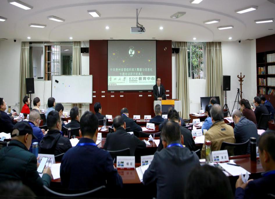 11月2日上午,由贵州大学EDP教育中心承办的中共贵州省委组织部大数据与信息化专题培训班开班典礼在我中心管理学院101教室举行。校党委书记李建军出席典礼,管理学院党委书记王秀峰主持典礼。