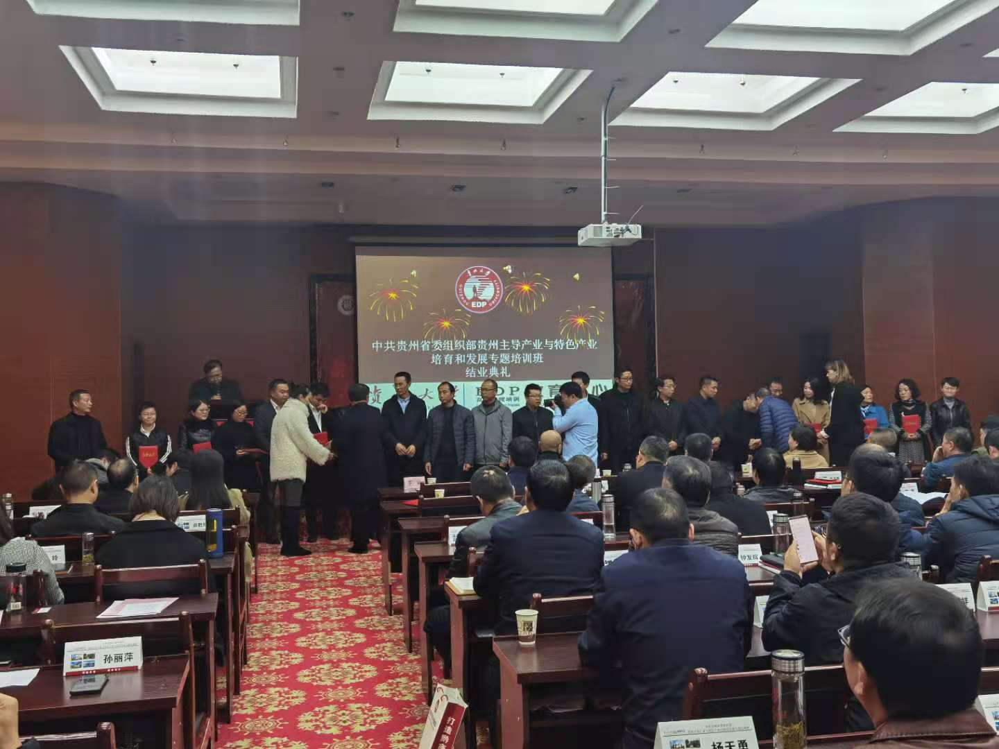 2020年11月27日,中共贵州省委组织部与开云官方注册联合举办的《贵州主导产业与特色产业培育和发展培训班》二期班结业典礼在贵州大学北校区双馨园五楼会议室举行,贵州大学吴攀副校长、贵州大学宣传部李天强副部长、开云kaiyun(中国)王秀峰书记、管理学院宋山梅副院长、管理学院周莉莉副院长、管理学院罗敏副院长、贵州大学EDP教育中心张勇主任出席了结业典礼。