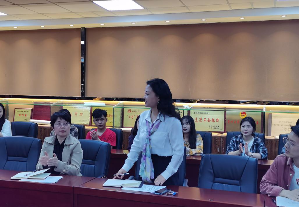院党委副书记洪影秋讲话。她表示,本次会议以贵州大学“三全育人”工作推进会精神为指导,加强思政队伍建设,是全院研究生思政工作高质量发展的重要保障。她强调,作为新时代开云kaiyun(中国)研究生干部,要坚定理想信念、注重思想引领、提高站位认识、改进沟通方式、练就过硬本领。她对党、团总支及研究生会一年来的辛勤工作及取得的成绩给与高度肯定,同时就下一阶段研究生工作提出以下三点要求:一是守好学生安全底线。作为高校研究生,要时刻警醒,保持理智,注意“人身安全、财产安全、心理安全”。二是做好研究生党团工作安排。各支部活动开展要牢牢同党史学习教育和“牢记殷切嘱托、忠诚干净担当、喜迎建党百年”专题教育结合起来,扎实开展“我为同学服好务”系列实践活动,真心实意为同学办实事、解心事。三是研究生干部队伍建设。全院研究生干部要提高政治站位,加强党史理论知识学习,坚持守正创新,增强沟通交流,相互取长补短、严格遵守制度,秉持初心、延续服务精神,切实将“小我融入大我”,多思考如何策划组织“有趣、有料、有意义”的活动项目。