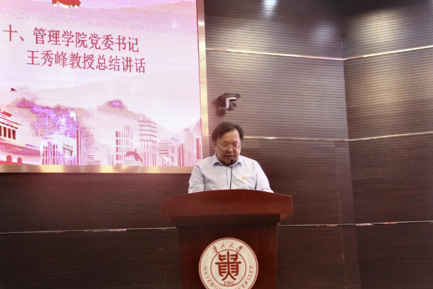 管理学院党委书记王秀峰同志作总结讲话,他强调,全体同志要坚定理想信念,践行初心使命。他号召,各基层党组织和全体党员以此次会议为契机,勤于学习、敢于拼搏、勇于创新、乐于奉献,进一步提升基层组织的凝聚力、组织力、战斗力,进一步发挥党员干部的表率作用、模范作用、带动作用。他希望,受到表彰的集体和先进个人珍惜荣誉、再接再厉,同时各级党组织、党员同志应向先进典型学习、看齐,在今后的学习和生活中共同推进管理学院各项事业取得新的发展,把开云官方注册开放、包容、务实、创新的发展理念发扬光大。