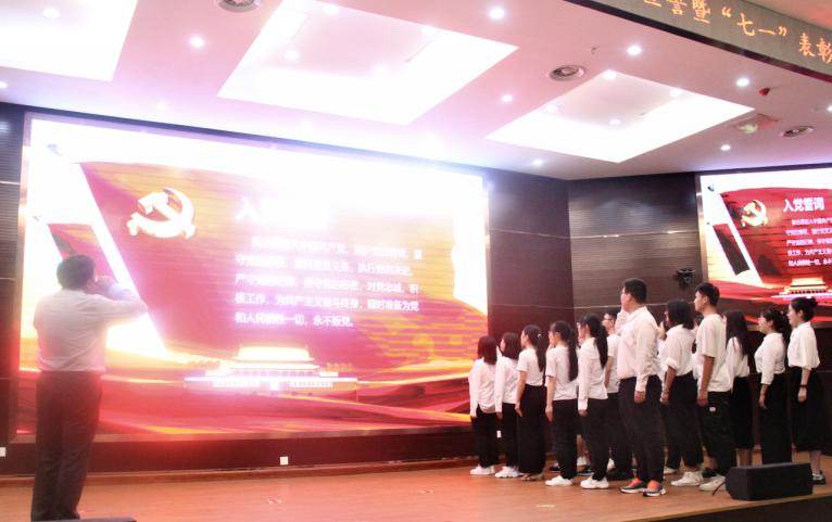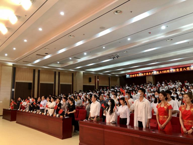 贵大新闻网讯6月30日中午,管理学院庆祝中国共产党成立100周年新党员入党宣誓暨“七·一”表彰大会在西校区贤正楼报告厅举行。管理学院党委书记王秀峰出席会议,学院副书记洪影秋、副院长罗敏、王婷、周莉莉、宋山梅,各科室负责人、教工党员、学生党员代表及入党积极分子参加大会。