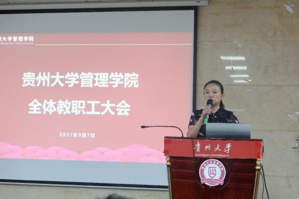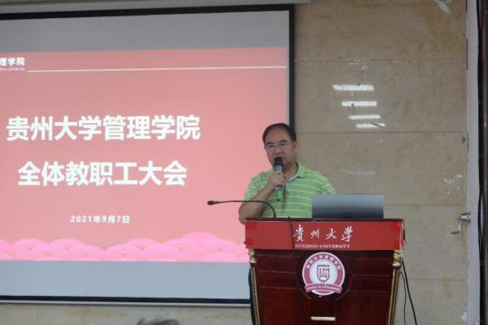 会上,院党委书记王秀峰传达了习近平总书记七一重要讲话精神省委副书记、省长李炳军在贵州大学调研指示精神,以及贵州大学2021年秋季学期开学工作会暨高质量发展工作推进会议精神,并就上学期工作作简要总结、研究部署新学期相关工作。他指出,学习贯彻党的重要理论精神,是当前和今后时期的重大政治任务,我们要切实提高政治站位,做到在工作中自主学、自觉学、自愿学,将理论与实践相结合,高站位、高标准、高质量、高效率推进党史理论学习教育各项任务落到实处、细处、深处。他强调,贵州大学作为贵州一流高校,师生作为贵州区域乡村振兴工作先锋队队员管理学院作为管理型人才培养基地,要充分扎根贵州大地、利用专业优势,在科教文卫和农林牧渔中主动建言献策,发挥示范引领作用,勇担贵州人民生活水平日益提高的助推器责任他希望,全院教职工再接再厉,在新学期继续将学科和产业深度融合,给产业镀金,将学科落实,把乡村振兴事业牢记在心真正为学校“部省”合建和双一流建设添砖加瓦,为开创百姓富生态美多彩贵州新未来注入源源不断的动力