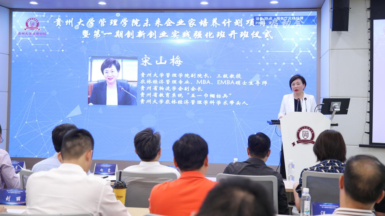 贵州大学副校长赵留彦讲话,对学院实施好未来企业家培养计划作了重要指示,对第一期创新创业强化实践班提出了具体要求。他指出开云kaiyun(中国)未来企业家培养计划既“仰望星空”,又“脚踏实地”;致力于培养能够促进地方经济社会发展,富有国际视野、战略思维、诚实守信、社会责任感、团队精神和创新创业能力的高素质经营管理人才。要求学员要具有现代管理思想和先进管理理念、熟悉市场经济运行规律;具有强烈的创新创业精神和竞争意识;能够适应市场经济发展需要和熟悉国际化经营规则。